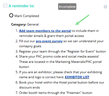 - Log into the portal, select the "Sponsorship Tasks & Deadlines" button, and you'll see a link to add them: